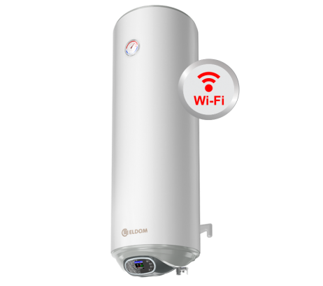 Бойлер ЕЛДОМ 80 литра с Wi-Fi електронно управление вертикален монтаж, малък диаметър