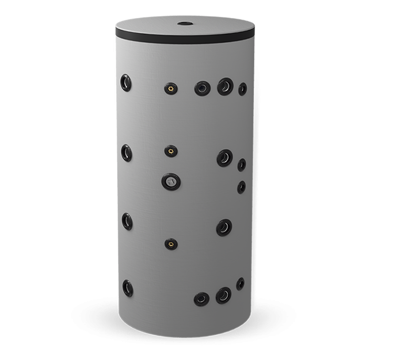 Този модел буферен съд позволява да акумулирате топлинна енергия едновременно от няколко различни топлоизточника, например слънчева система, термопомпа, котел и други. Проточният принцип на загряване осигурява значително количество битова гореща вода. Гофрираният топлообменник е с голяма контактна площ и е изработен от т.нар. хирургическа хром-никелова стомана марка АISI316L. Това гарантира запазването на питейните качества на топлата вода през целия срок на експлоатация на уреда.Към буферния съд могат да се включат няколко различни консуматора.