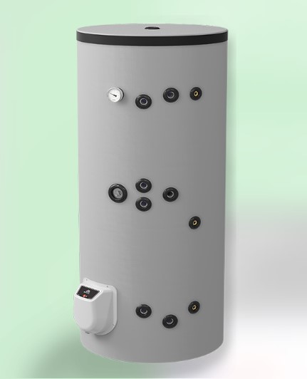 - с две серпентини – за комбинирано използване на два топлоизточника. Значителни икономии на електроенергия могат да се постигнат чрез подходящо комбиниране на режимите на отопление през всеки сезон. Горната серпентина работи в проточен режим и се свързва към и котел или камина с водна риза; долната серпентина работи в акумулиращ режим и е подходяща за свързване към слънчев колектор или термопомпа.