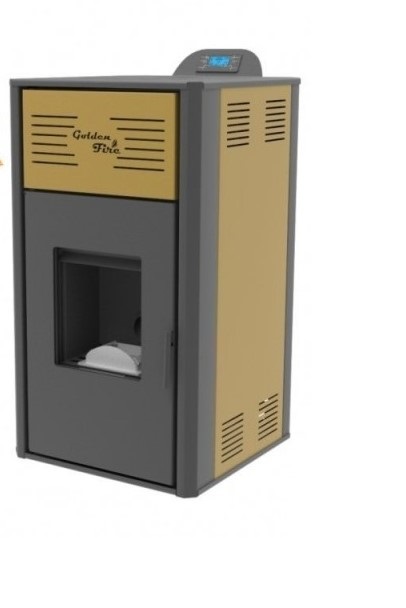 Камините Golden Fire от серията GF PS са перфектната комбинация от стил, дизайн и качество. Можете да избирате между четири цвята (черно , слонова кост, червено , златно) за да го съчетаете перфектно с интериора си. С помощта на вграденото интелигентно електронно управление, разширителен съд и помпа, използването на камините е много лесно и с минимална поддръжка. Имат възможност за връзка с прецизен стаен термостат, което гарантира перфектното регулиране на температурата във Вашия дом. Запалването на пелетите е с керамичен нагревател и става за секунди. Сензори с найразлични функции контролират процеса на горене и температурата на водата и димните газове, което е допълнителна гаранция за сигурността на камините по време на  работа.