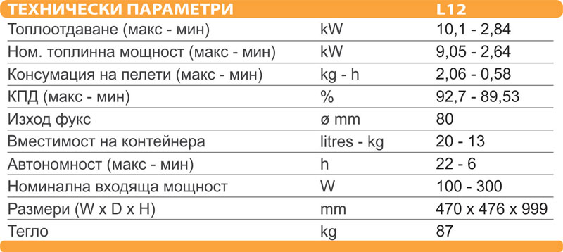 - Вграден бункер за дървесни пелети с вместимост 13 кг.