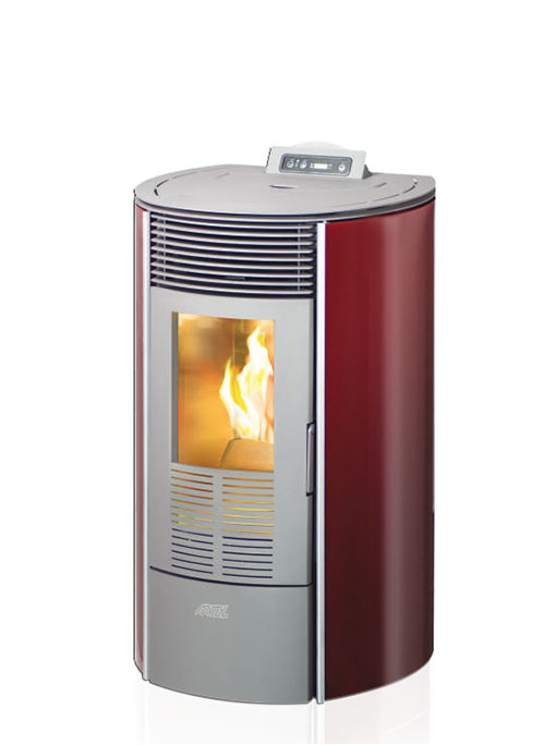 Топловъздушна пелетна камина  REDONDA BASIC S8 G СТЪКЛО, произведена в Италия – подходяща за отопление на помещения до  160 m³ или площ до 64 м2 .