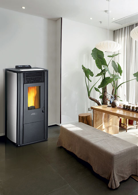 Топловъздушна пелетна камина с въздуховод CLASS MAJOLICA LC12, произведена в Италия – подходяща за отопление на помещения до 230 m³ или площ до 92 м2 .
