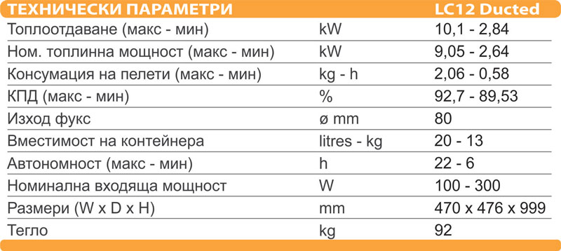 - Консумираната мощност на пелетната камина е 100W при нормална работа и до 300W при първоначално запалване.