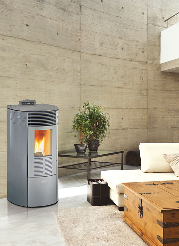 Топловъздушна пелетна камина REDONDA BASIC L12 A, произведена в Италия – подходяща за отопление на помещения до  230 m³ или площ до 92 м2 .